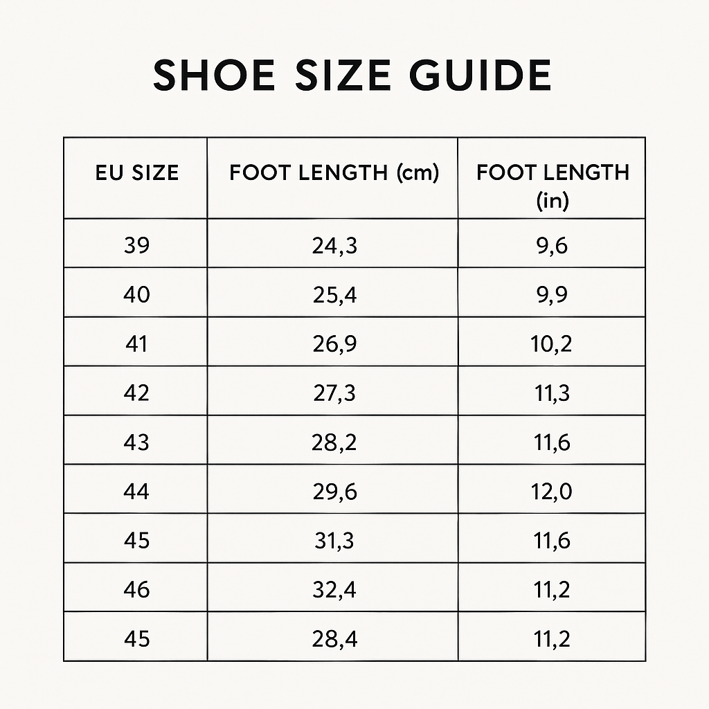 Our shoes are available in a wide range of sizes. Please check the size chart on each product page for exact measurements.